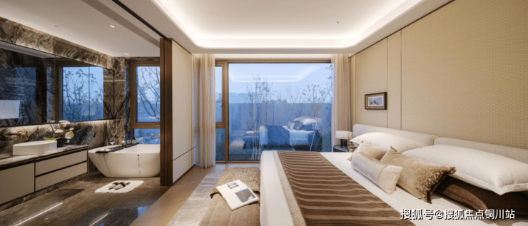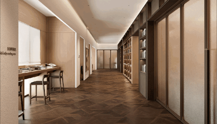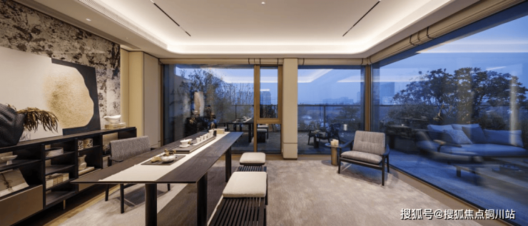 下沉式设计的设备平台,进一步打开下叠户型的广角视野,搭配隐逸酒店风格的入户景墙,让下叠不论是南向还是北向,都足够隐逸、私密。