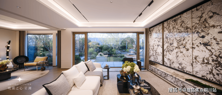在明湖之心·星洲,石材的运用也有着创新手法,通过斜切、弧面等高级工艺,不仅视觉上进一步提升,更延展出空间细节——