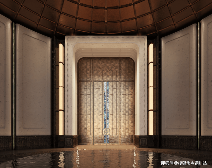 月底前,保利津门天珺的实景体验区会全面开放。目前已经呈现的大门,尺度跟质感惊人,创天津大门高度之最。门扇是国家非遗制铜工艺,据说整个大门有10多吨重,2对门把手高度超过7m,没错,门把手的高度。左珠江,右海河,蓝、绿、紫写意海浪形状,上面用掐丝珐琅工艺绘了9条鱼,象征长长久久年年有余。在实景上卯足力气的已经是行业惯例,大门冲击力之后,保利津门天珺的实景体验区,能不能在景观上给天津市场新的冲击点,就看月底的正式开放了。