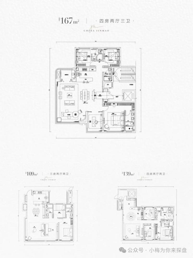 金茂·樾满晴川目前还在前期筹备中,户型面积是109,140,166三个面积段,为第四代住宅百分之百➕的得房率,层高3~3.1米