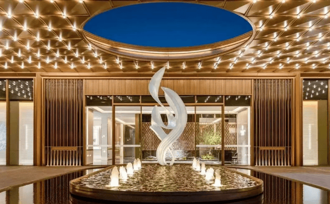 主题景观丰富:汲取王羲之《兰亭序》的艺术灵感,匠心打造了 “月雾雅集”“清泉照月”“群贤叙月” 及 “抚林颂月” 四大主题景观,重现文人墨客的悠然雅兴。主庭院融合了葱郁植被、宁静水景、古朴照壁和精美雕塑等元素,漫步曲折小径,绿荫浓密,繁花似锦,演绎出 “水月花堤” 的迷人风光。