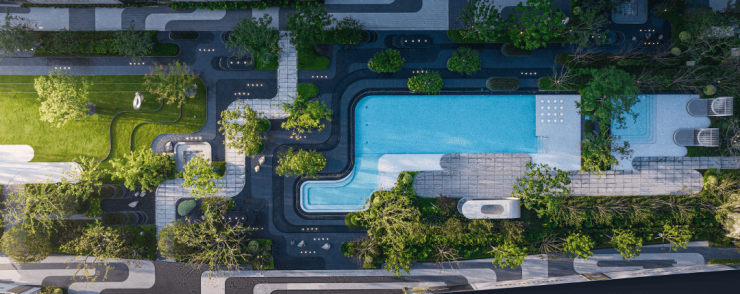 景观设计:CICADA 诗加达负责景观设计,以新加坡花园城市为设计理念,坚持大围合设计,300 米景观中轴以 “曲水流觞” 为灵感,串联水系、绿廊与主题花园,营造出一步一景的雅致格局。