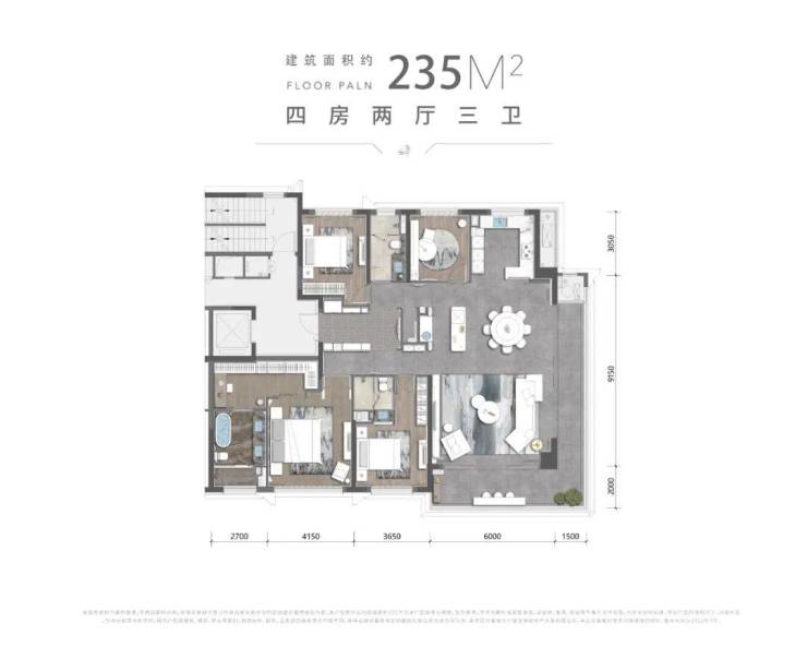 而建面约235㎡的户型,更承载着云河颂被“全城目光聚焦”的一大因素:全城仰望的超17.3米“L型”环幕阳台。