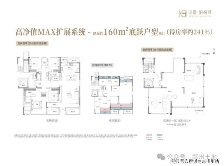 该户型的一层,得房率高到241%: