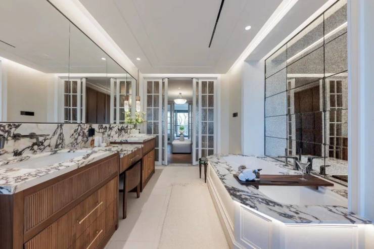和园下叠4房2厅4卫格局,每个套房空间都很大!次卧套约30㎡,约55㎡大主卧集豪华卫浴、衣帽间、休憩区、景观阳台于一体,这才是改善大宅该有的体面!