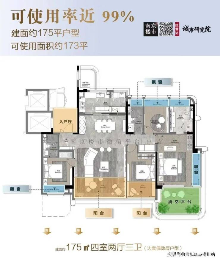 打造4栋22-24层小高层、3栋10层洋房,户型建筑面积也聚焦到了河西中部改善稀缺的150、175、225㎡。一户一露台,最高使用率约99%