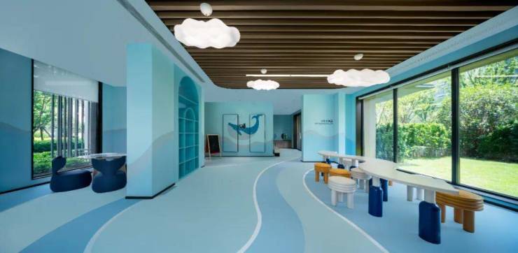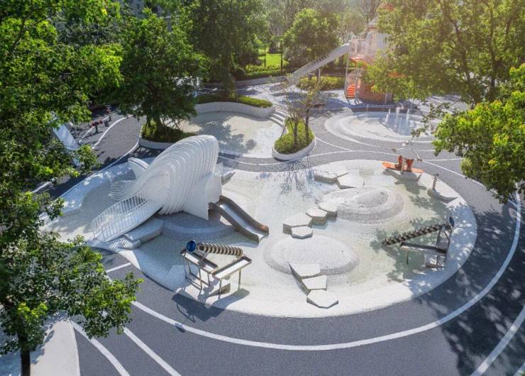 漫步园区,错落有致的海洋风园林景观如诗画般铺展。以“洋流生活圈”为灵感基底,从「学海知流」到「归家暖流」,七大场景巧妙落位,约三万方洋流生活画卷徐徐展开。童趣盎然的儿童游乐场、分龄设计的泳池、开阔的阳光大草坪、复合功能的中央游乐空间……更有灯塔滑滑梯、洋流喷泉、海浪跑道、鲸鱼装置、环流廊架等趣味点景其间,让探索与欢乐无处不在,可玩性与观赏性满分。