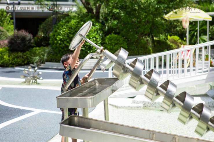 夏日戏水区:通过精致的装扮打造,使园区戏水池化身清凉派对,让孩子能够在戏水区欢快地玩水,让忙碌的收房业主们能够有片刻的休闲时光,体验玩水的快乐。