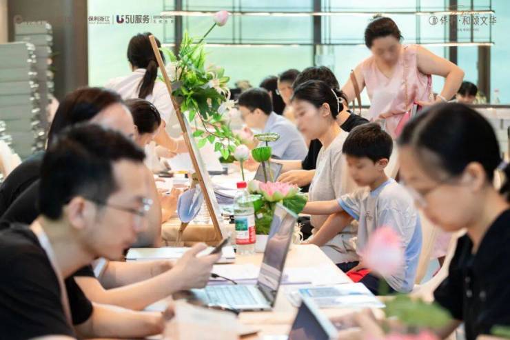预交付当天正值炎炎夏日,项目以“美好祥和,万事如意”为主题,巧妙地将荷花元素融入现场,为归家路带来清新生机与美好祝愿。此外,为了能够更好的为业主服务,提升收房体验感,现场额外打造三大专享区:
