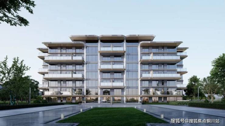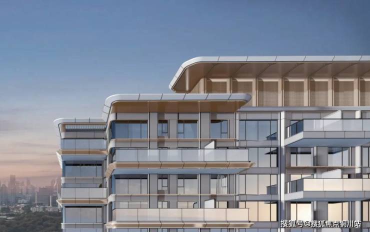 建筑通体主要为香槟色,立面以两层为单元进行统一设计,呈现出整体主次分明,挺拔向上的建筑形象。翼板尺度纤细,线条顺滑,出檐深远,质感细腻,立面充满未来感的同时又不失家庭应有的温和元素。