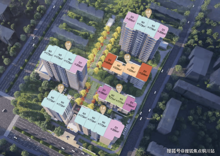 产品面积段分为高层两种户型:建面约173㎡、205㎡的四房。洋房四种户型:建面约177㎡、186㎡、220㎡、249㎡的四房,共规划了421套房源,其中173㎡为主力户型,占比62%。