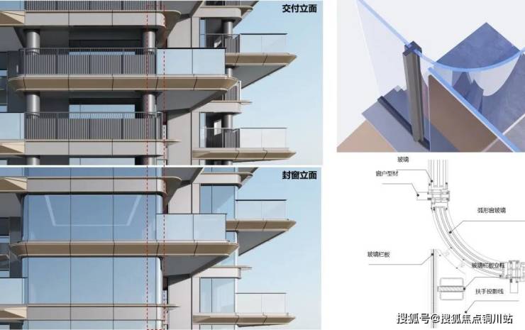 考虑交付版与后期使用之间差别,提前考虑露台栏杆与窗户交接问题,确保其落地性。