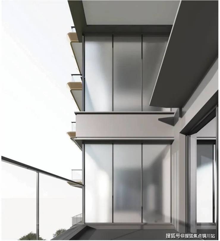 奇偶层露台栏板采用渐变磨砂玻璃,透光率60%+雾度40%,兼顾采光与隐私。