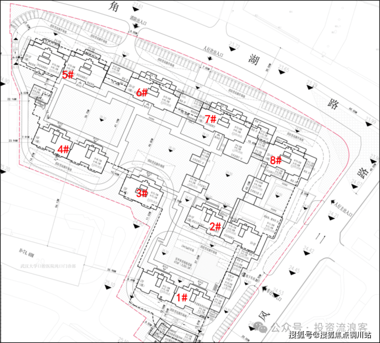 配置层面:①项目临三角湖路和东风二路配有2650㎡底商;②各楼栋与出入口间均用风雨连廊进行连接;③2、5、6、7、8#均规划有架空层。③项目整体规划打造中央中轴景观;④配套方面配备了游泳池、健身房、下沉庭院、会客厅等。