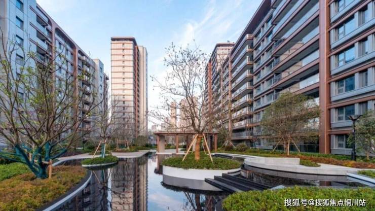 除了吸睛的立面,园林景观同样令人陶醉。行走之间,目光所至皆为风景,由北向南沿途景观轴上,打造了阳光草坪、林荫平台、水景会客厅等多元主题花园,尽管年底交付不及春夏季,但依旧能感受到社区处处洋溢的绿意。