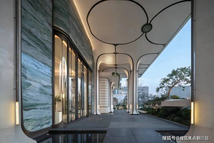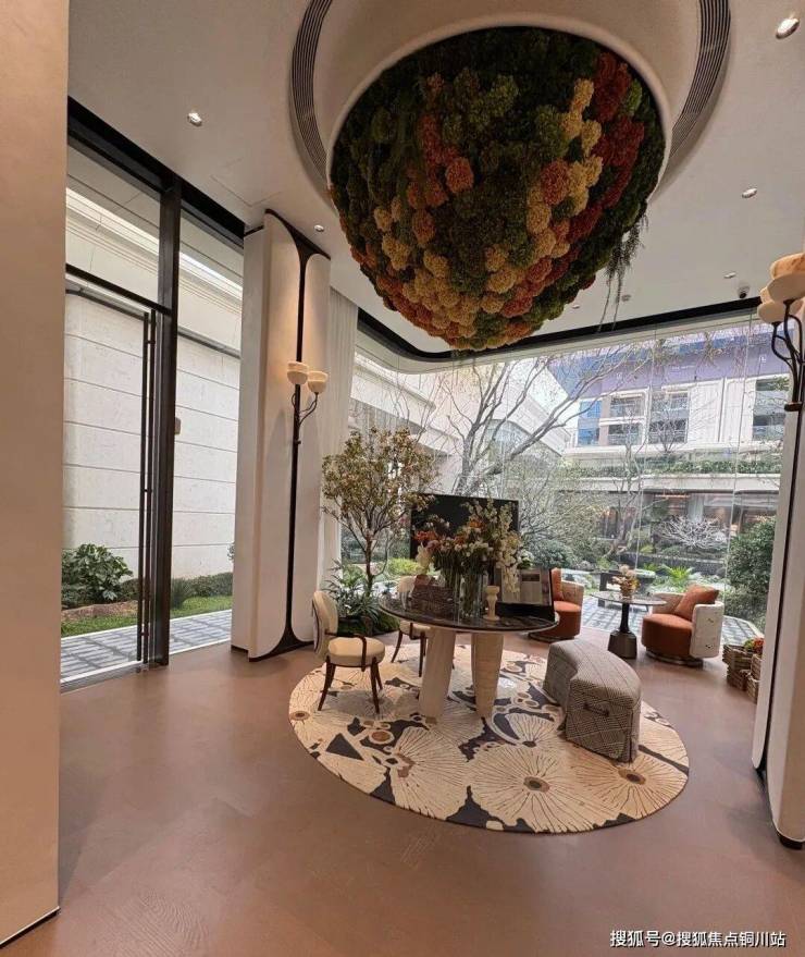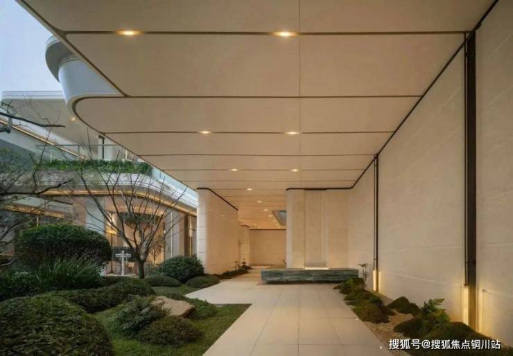 地库整体抬高约3.5米,会所层空高约6米,住宅首层架空4.5-6米,不仅解决了地库采光通风的痛点,更让低楼层居住品质大幅提升。下沉庭院内,虹桥步道串联起不同景观节点,微缩地形搭配错落生长的植被,再加上灵动水景,形成“移步易景”的沉浸式体验。