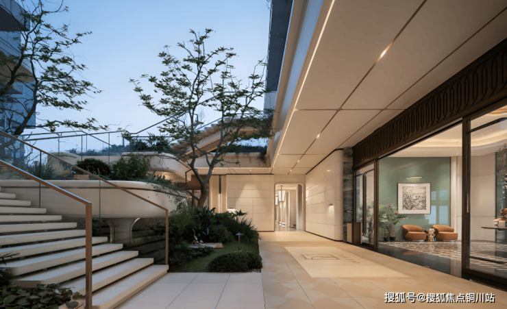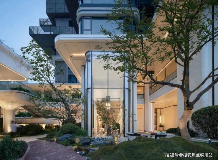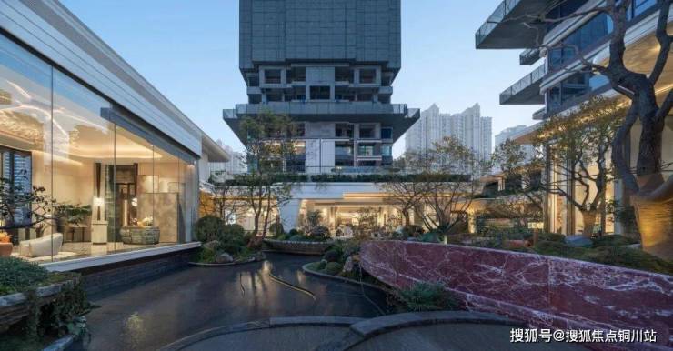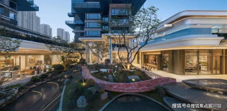 如果说商业是社区的“烟火气”,那么下沉庭院,就是璞拾光屿的“自然之心”。项目通过“架空抬板+首层架空+下沉庭院”三重设计,将地库、设备间藏于基座之下,释放完整地表空间,打造出山川、溪流、栈桥、浮岛交织的立体微景观,成为社区“悬浮森林”的核心载体。