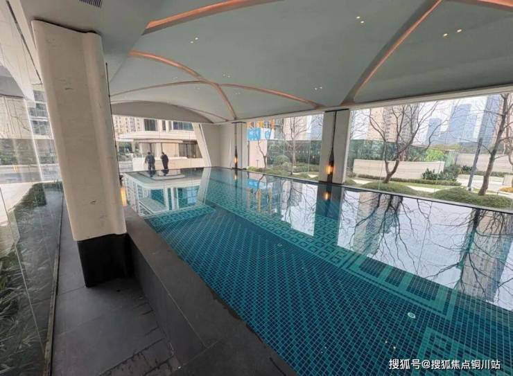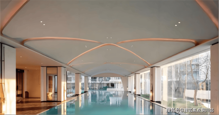 会所采用“架空+下沉+挑高”的立体设计,一层衔接下沉庭院,二层设置泳池、健身区,三层为休闲社交区,通过连廊、楼梯、电梯无缝串联,实现“一层一景、层层不同”。室内恒温泳池+室外无边泳池的组合,打破了传统地下泳池的压抑感,运动时可俯瞰社区园林,一边健身一边赏景,氛围感拉满。