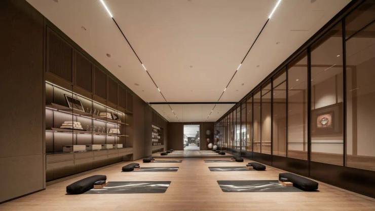 围绕在飞瀑两侧的,是运动会所。含健身房、瑜伽室、恒温泳池等空间。
