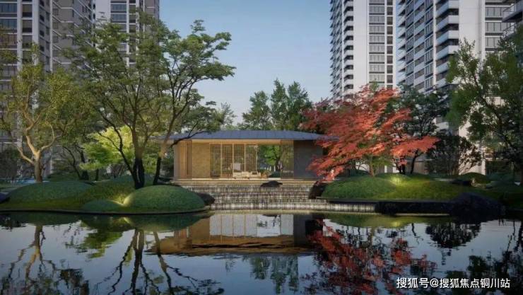 大围合式的建筑布局,建筑退位于自然,最大超70m楼间距,为自然留下更多的可能性,美学与质感与自然交融,是生活也是诗和远方。