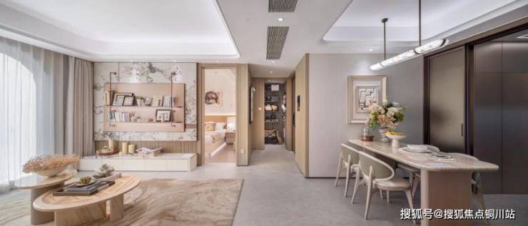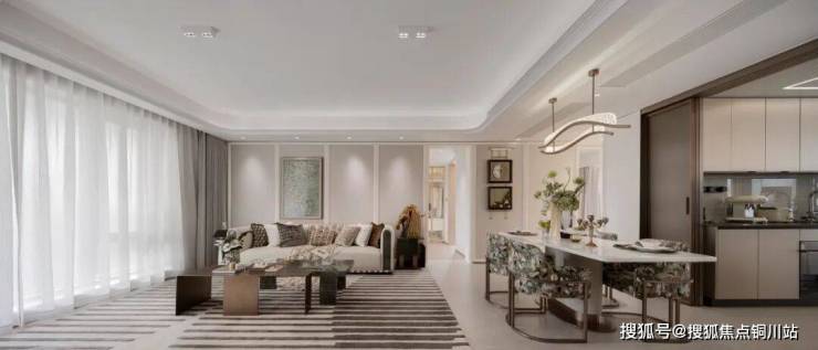 创新的“洄游动线”设计:打破传统户型的静态格局,让客厅、餐厅、厨房等核心区域流畅串联。室内空间感与尺度感尤为出众。