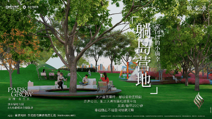 不止于此,映秦淮开发商北谷地产还斥巨资,升级改造项目南侧滨水绿地,将这里打造为滨水生活客厅,涵盖河畔客厅、躺岛营地、草坡地毯、潮玩奇遇、能量通道、夜光跑道、乐设焕新、润心便民8大模块。