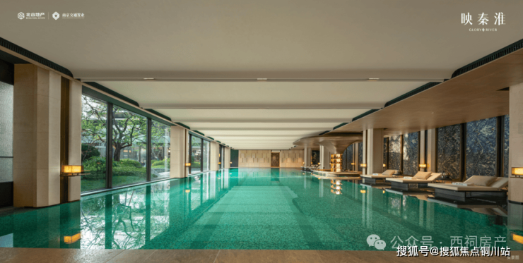 2、康养健身区配备了瑜伽室、普拉提室等,而最具亮点的是恒温泳池,不仅颜值高,规格更高。玻利维亚蓝与绿野仙踪的石材搭配,倒映一汪碧水,再搭配无界庭院视野,水景相融美不胜收。