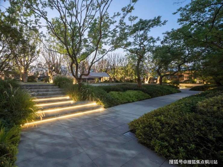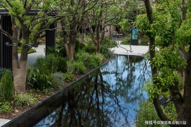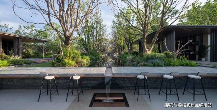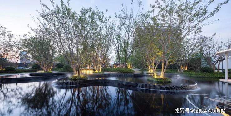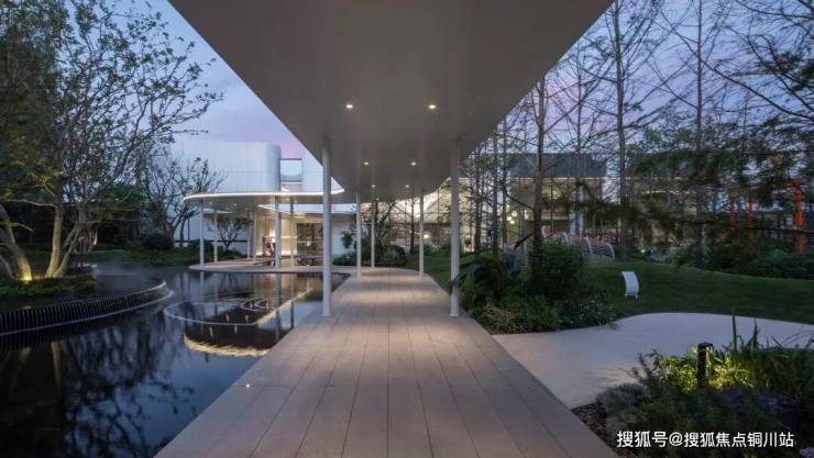轻薄的风雨连廊串联起酒店式大门与未来的会所,池水在阳光下晶莹剔透,泛起的秀色,映出一片明净。水景跌落的轻语,树梢轻微的摇曳,更像轻风送来的怡然安宁。