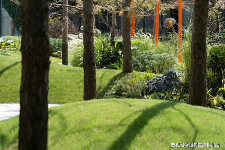 小径与植物相互穿插,随着两侧的地形的缓缓起伏变化,营造富有野趣的林间乐园。郁郁葱葱的绿植,蜿蜒曲折的道路,未知的体验激发着孩童对自然的探索。