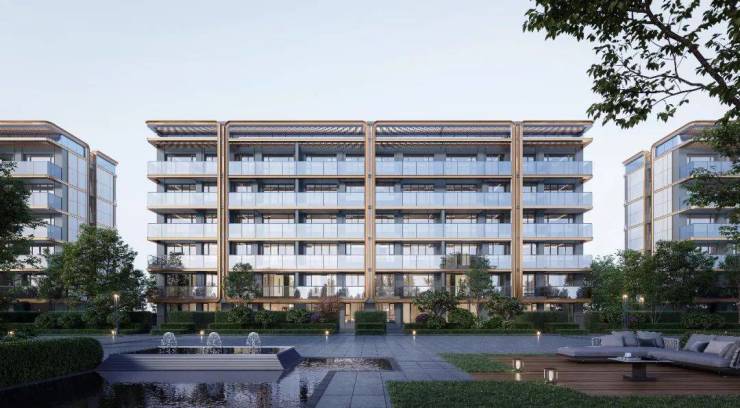 项目容积率只有1.6,项目利用地块的先天优势,进行了前低后高的布局形式,共建28栋楼,共700多套房。包含4-6层叠拼、9层洋房、20-24层高层。