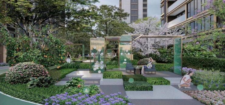 承载锦绣精细之质,于繁华都会之芯,奢配绿城创新三大“芯空间”。以隐约朦胧的美感,软化建筑与环境之间的对比,构建四季藏锦的园区美学。