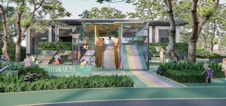 承袭织锦工艺中的经纬联合显花、彩抛换色之法,并在地化提取织锦纹样肌理,沿循园区纵横之经纬,巧妙梭织起了八重园景:流月园、锦云园、悦锦园、长乐园、春晓园、拾趣园、知否园、织心园,并匠心打造下沉式景观锦绣琉庭……实现邻里共融共处。