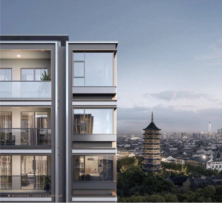 一脉承袭杭州·春月锦庐建筑基因,延承Bezel-less“超纤细”设计的潮流立面,一体化铝板搭配大面积玻璃,拉宽横向视野;以现代手法抽象提取了宋锦中纬锦的工艺,公建化表达、高级灰色调,在古城新芯,攫取更多的天光与目光。