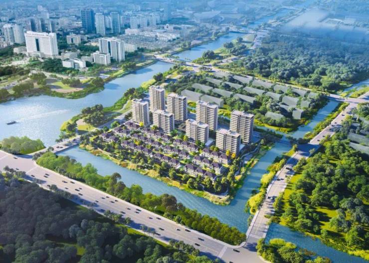 建筑设计:高层建筑革新传统,外立面采用香槟色线条勾勒,辅以石材 + 铝板干挂工艺,沿河大平层阳台覆土种植立体绿植,打造 “第四代住宅”。配套用房屋顶更精心覆盖草坪式绿化,提升人居品质。