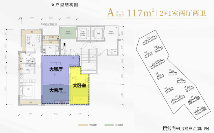 招商揽阅大敢尝试,率先做出了赠送面积暴高的117平户型。