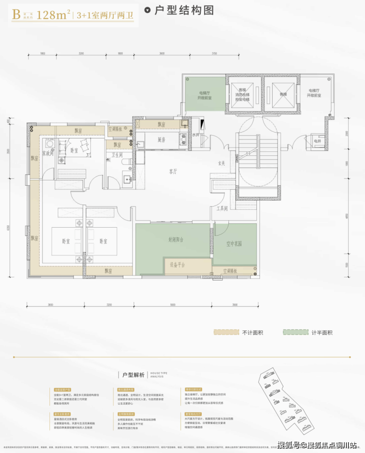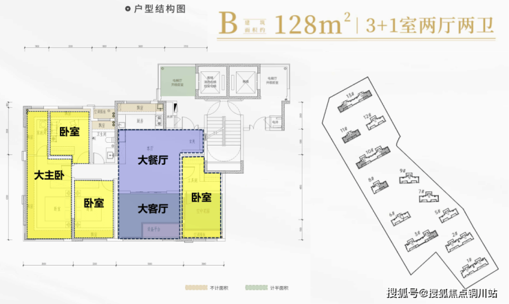 再看建面约128平户型: