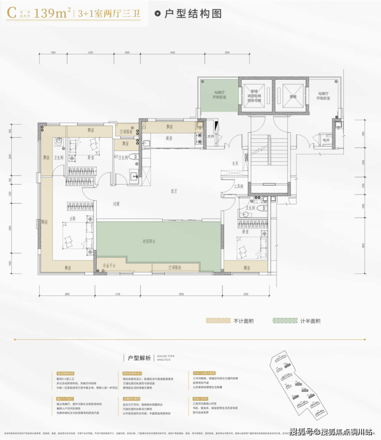 最后看建面约139平户型: