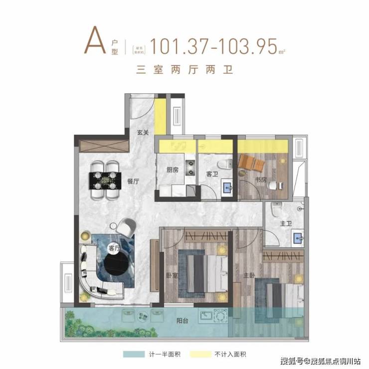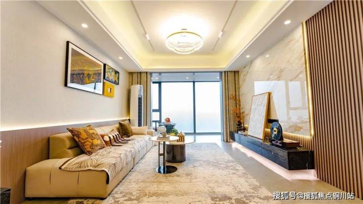 而建面103㎡户型样板间就实现了这一点。它的客厅面宽也阔约3.7米,这种尺度的空间比老三代住宅中绝大多数的建面120㎡以下户型的客厅都要阔绰。