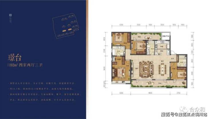 192平,元宝户型。客厅开间8.8米,南北双阳台35平,中西厨设计。