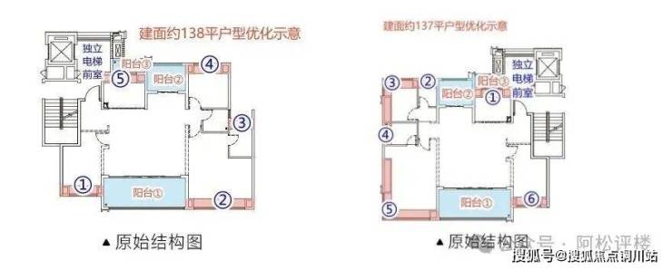 优化面积上,南向大阳台可优化一半空间,5处飘窗可全优化,优化后套内得房面积约97平,综合得房率约91%!