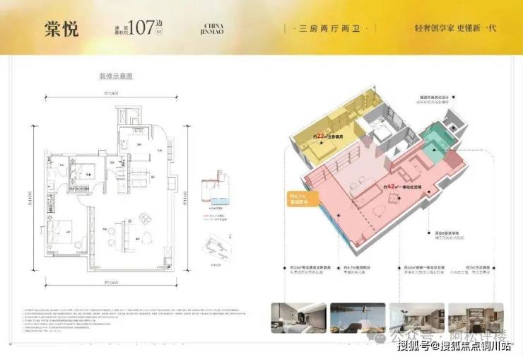 现在,方岛金茂观棠的洋房,低公摊+准四代户型空间优化的双BUFF,实现了约107%的超高得房率,对普通住宅形成了不可逾越的空间优势。