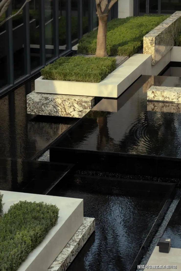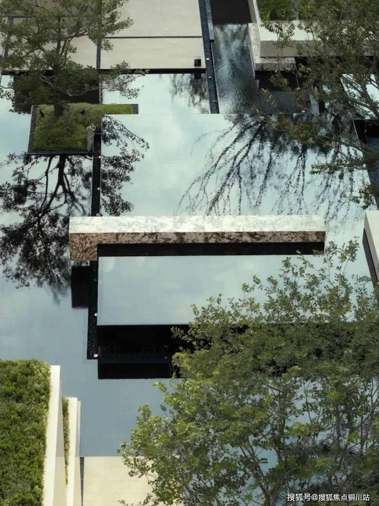 用富有力量的结构体激发对场所的探索欲望。静水与奢石建构比例与色彩上的对比,高低错落的序列给予生动的围合形态。在极具张力与冲击力的视觉下,观看线条、形态和光影的精彩联动。