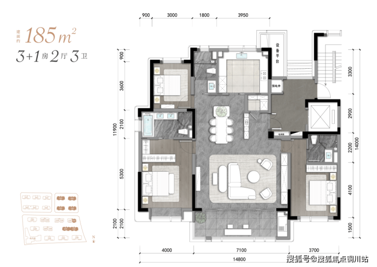 面积与布局:有建面约 165㎡、185㎡、220㎡、250㎡四款户型可供选择。户型设计注重空间的开阔性和实用性,面宽最大达到约 17.8 米,最小户型面宽也做到了 14.45 米;横厅最大面宽做到约 8.8 米,最小 165㎡户型面宽也做到约 7 米。所有户型均配备独立的电梯厅,增强私密性的同时,部分户型实现了电梯厅独立采光。