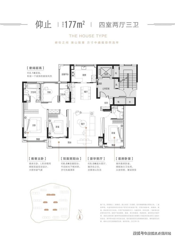 建面约177㎡天幕大平层,舒朗开阔的四室两厅三卫打造。约8.5米宽景双阳台,搭配三玻两腔LOW-E的瞰景落地窗,可将园林景观一览无遗,每一幕景,都是看得到的品质与用心。约5.5米超宽大横厅+餐客厨一体的设计,将生活视角布于同一平面,空间尺度宽阔,可满足全家人的互动。