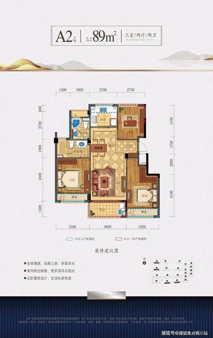 最大的亮点是,户型得房率近100%(约98%),市面上已经十分罕见。建面约89方户型,尺寸与目前市面上其他楼盘105方左右户型相当,总价仅160万级,即可拥有南北通透大三房!