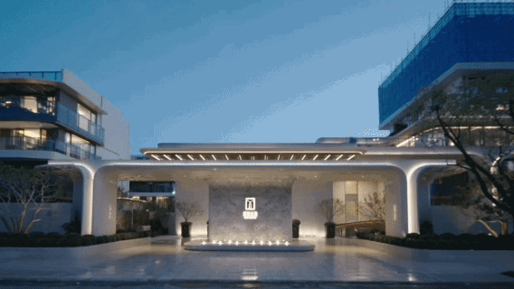 约13米高建筑飞瀑,潺潺流水与玻璃幕墙形成虚实交织的视觉焦点;叠水景观、空中连廊、休憩亭台层层递进,构建出“移步异景”的立体游园动线。近8.5米社区门头对标顶奢酒店尺度,通过石材与金属的碰撞,让归家成为一场非凡的度假旅行。