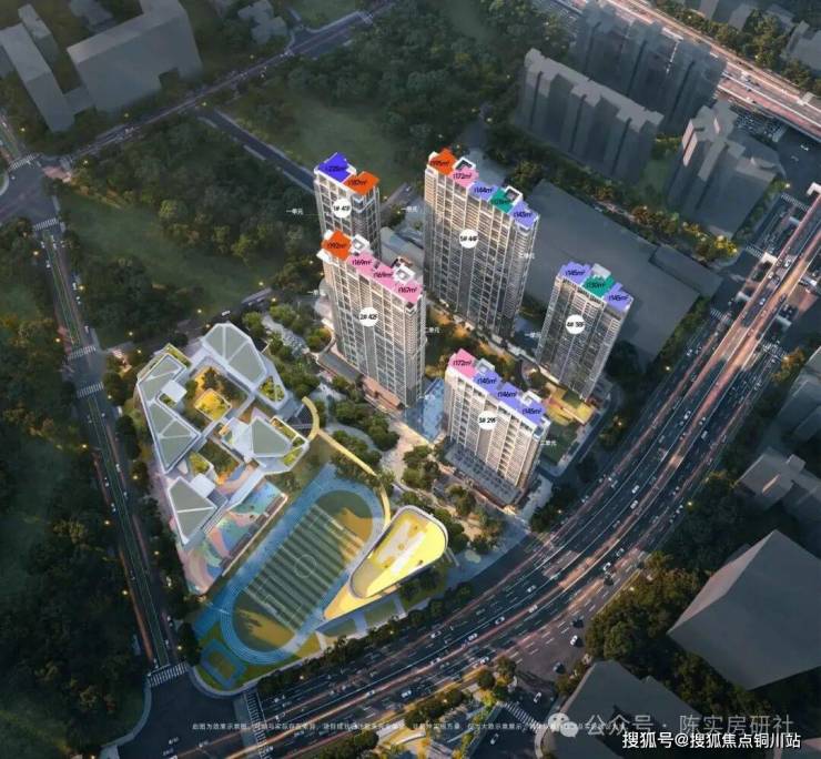 该项目总共14栋住宅、1栋写字楼、1所九年一贯制学校、1所幼儿园。11栋超高层。一期共5栋楼,1栋高层和4栋超高层,户均165㎡,定位改善。面积段为130-225㎡所有楼栋均在1F或与商业顶层间设置架空层。整体成围合式布局,中间成中央景观,前后楼间距55.6米。这个间距来说不算很大。又有是超高层和高层结合。相比现代第四代住宅和低密的项目还是有点“刚”的。
