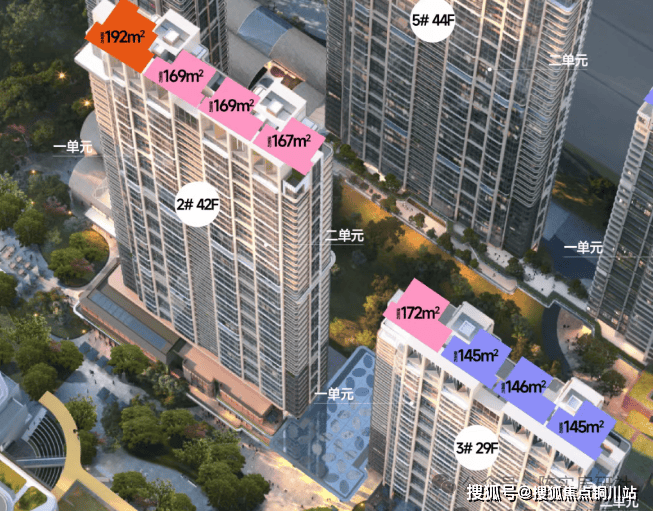 预计首推的是2、3号楼,其中2号楼42层,2个单元,2梯2户,西边为1单元,东边为2单元,户型从西至东分别是192平,169平,169平,167平。3号楼靠近唐家墩路,共29层,也是整个地块唯一的普通高层楼栋,也是2个单元,2梯2户,从西至东依次是172平、145平、146平、145平。