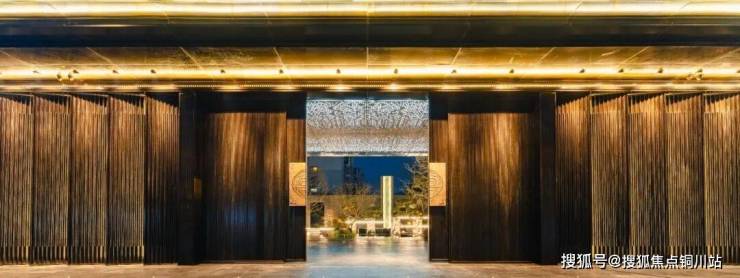 特别震撼的莫过于重金打造的约50米显赫门庭,恢弘气派,材料考究。约9米定制紫铜大门由非遗匠人手工锻造,气势巍峨恢宏。两侧通顶格栅搭配保加利亚灰岩板,呈现出偏内敛的贵感,豪中透雅;地面回形纹铺装,寓意富贵不断、吉利永长;屋檐勾勒云纹环绕,每一处细节极尽匠心,删繁就简。