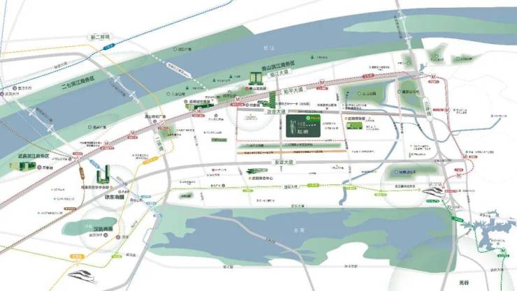环境上,武汉最大的开放式游园——南干渠游园,距离项目南侧约300米。这座绵延5公里的游园,面积相当于两个洪山广场。